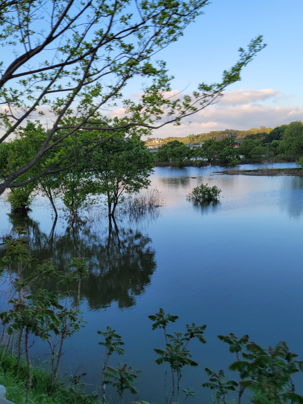 하늘 비친 호수 수심이 깊은 듯 짙은 남색이라 그 마음을 알 수가 없을 것 같아라~~♡